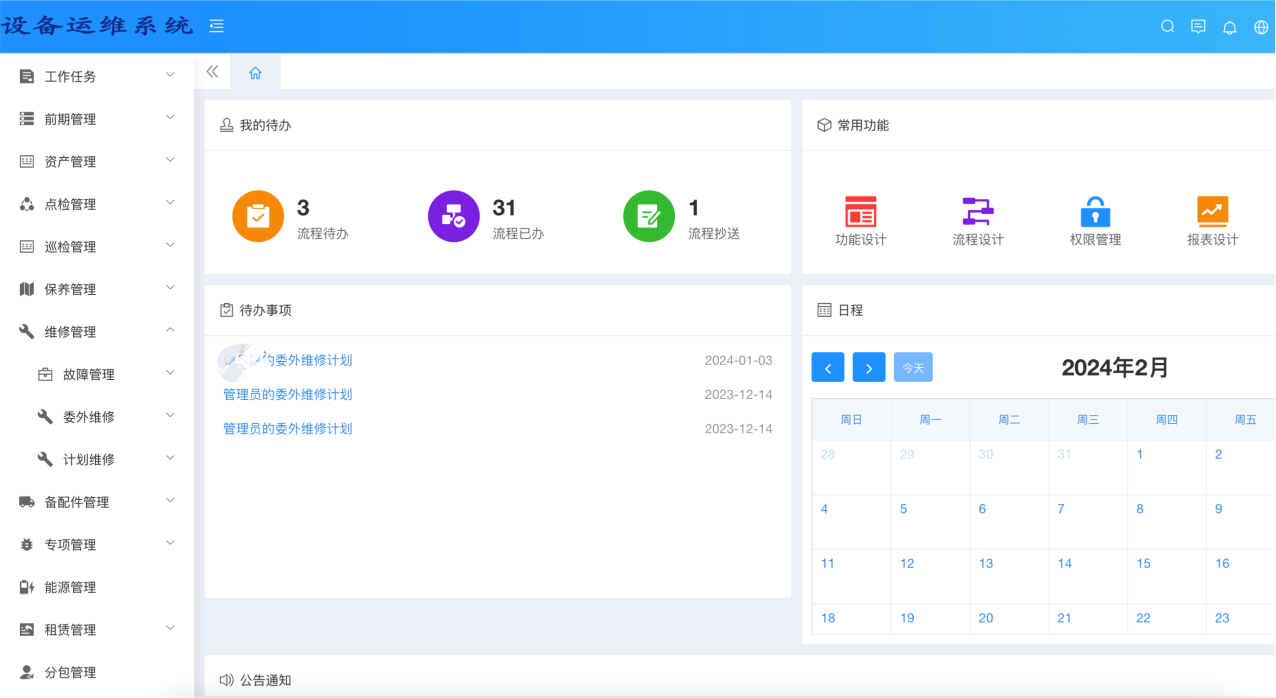 设备运维管理系统以数字化、智能化、可视化为核心,实现对设备档案、日常巡检、预防性维护、故障报修、备件管理及绩效分析的全流程闭环管理,助力企业构建可预测、可管控、可优化的现代设备运维体系。该系统的深入应用,将推动企业设备管理从“被动维修”向“主动维护”和“预测性维护”转型,显著提升设备综合效率与使用寿命。